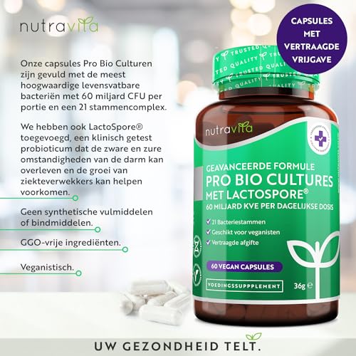 60 Miljard CFU Pro Bio Cultures Complex – Probiotica – Veganistisch Multi-Strain Levend Spijsverteringsenzym Supplement – Mannen & Vrouwen – Super Sterke Bacteriële Culturen – 60 Capsules Probiotics