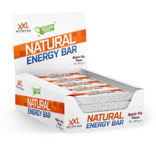XXL Nutrition – Natural Energy Bar – 12 Pack – 100% Natuurlijke Energiereep – Voedzame Snack Reep – Lactosevrij & Veganistisch – Appeltaart Smaak