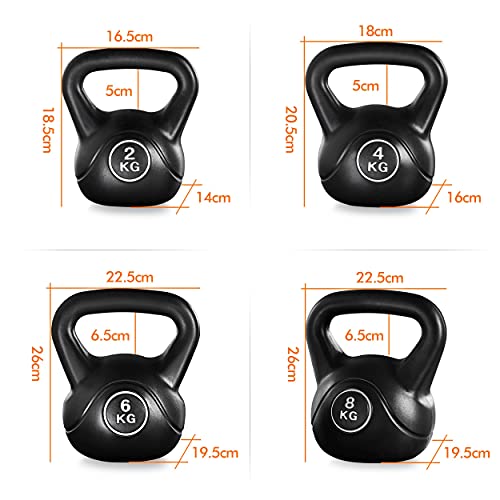 Yaheetech Basics Kettlebell kogelhalter met vloervriendelijke kunststof ommanteling, fitness swinghalter 2 kg / 4 kg / 6 kg / 8 kg kogelgewicht, zwart