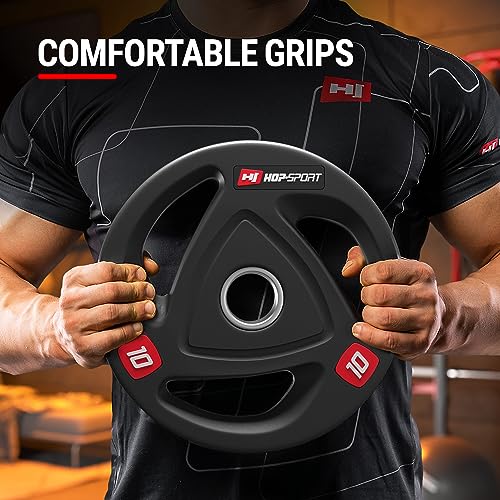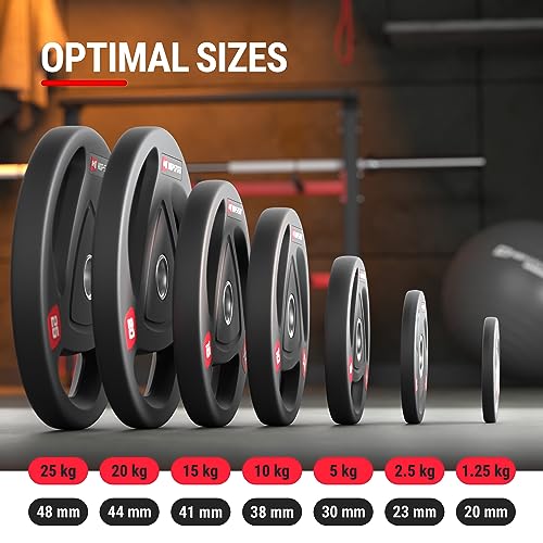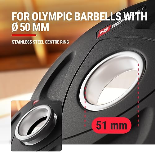 Hop Sport Olympische Gewichten Set 20 kg 4 x 5 kg, 2 x 10 kg, halterschijf 50 mm voor alle krachtapparatuur en halterstangen in je home Gym