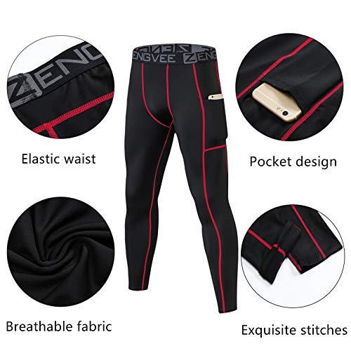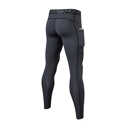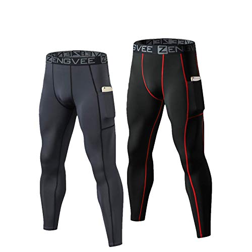 HUAKANG 2 Pack Compressie Panty Heren Running Leggings Cool Sneldrogende Basislaag Sport Workout Jogging Broek Atletische Training Gym Panty met Zakken